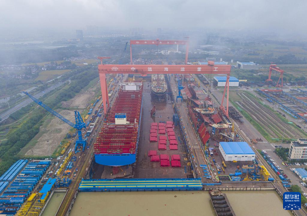 10月14日在江蘇省南通市通州區拍攝的南通象嶼海洋裝備有限責任公司船塢(無人機照片)。