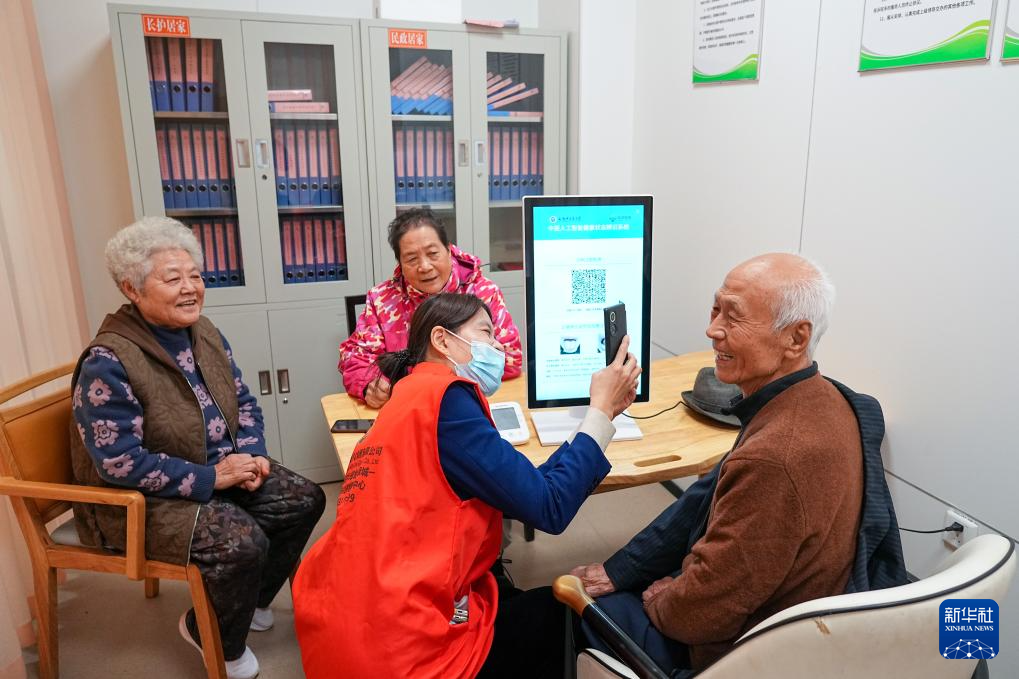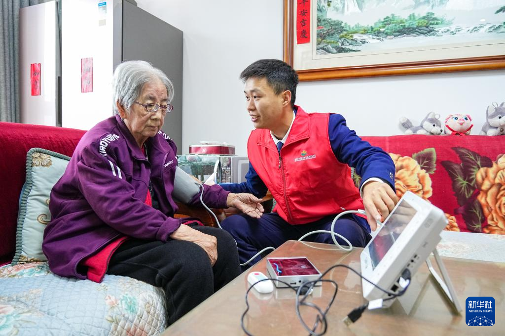 10月23日,養老服務員在淄博市張店區馬尚街道金石社區上門開展每日健康監護服務,相關數據可同步到老人親屬手機上。