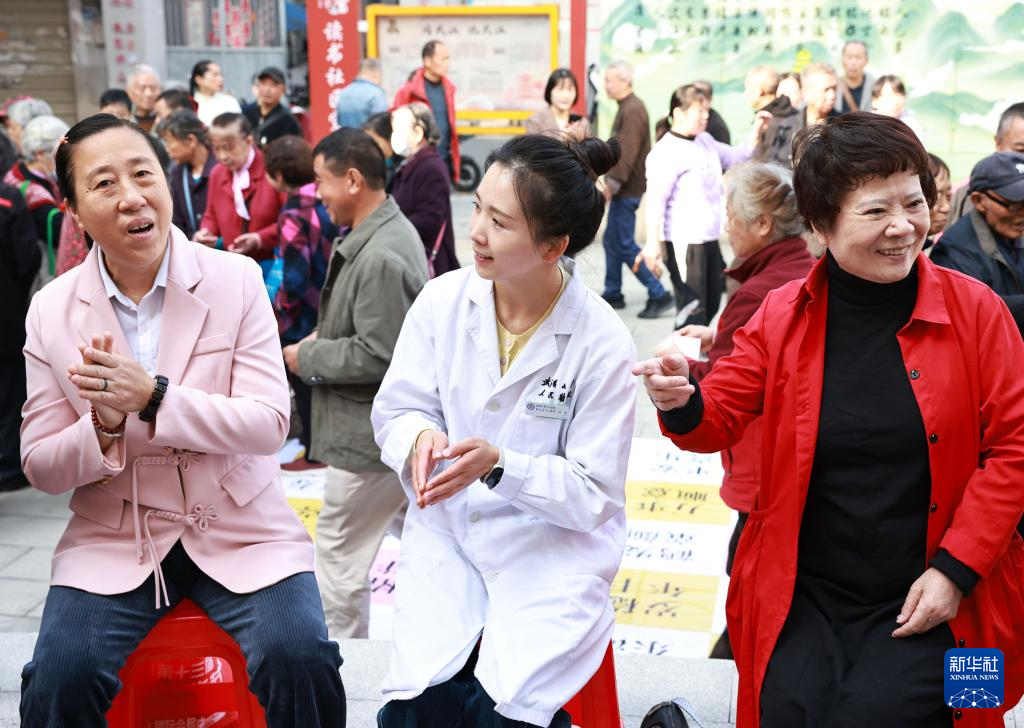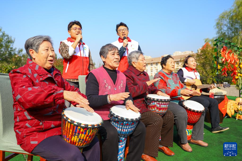 10月28日,湖北省人民醫院醫務人員為武漢市武昌區黃鶴樓街道讀書社區老年人提供音樂療法服務。