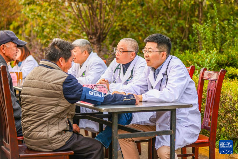 10月28日,河南省焦作市溫縣的醫務工作者為老人義診。