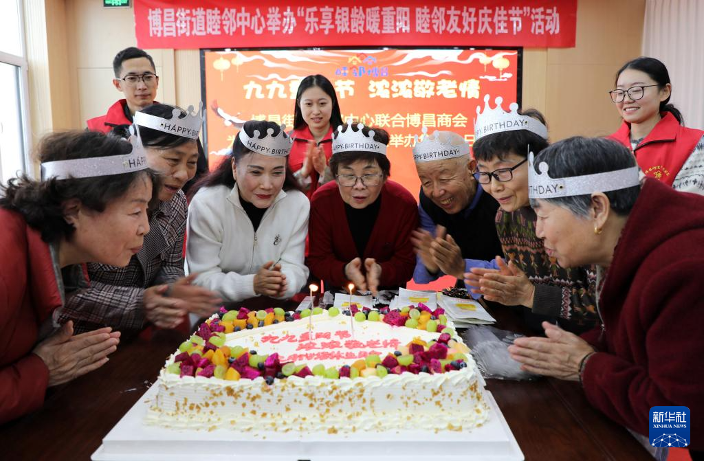 10月28日,在山東省濱州市博興縣博昌街道睦鄰中心,轄區內10月生日的老人一起過生日。