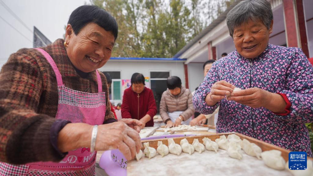 10月28日,山東省鄒平市臺子鎮城關村片區的老人聚在一起包水餃,喜迎重陽節。