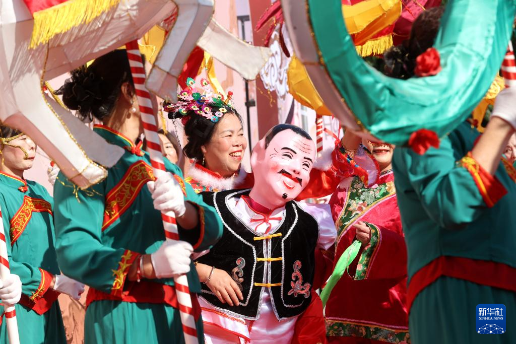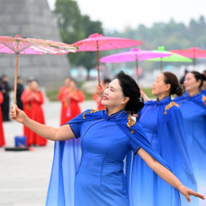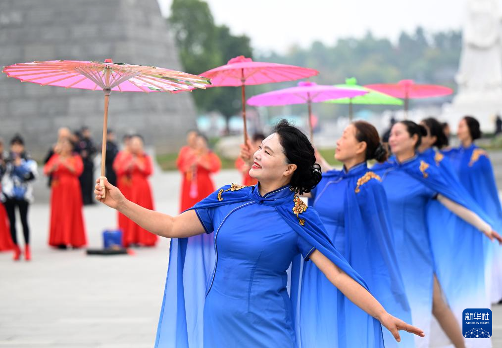 10月29日,民間藝人在浙江省湖州市德清縣第十屆舞陽侯會非遺巡游活動上進行民俗表演,慶祝重陽節。
