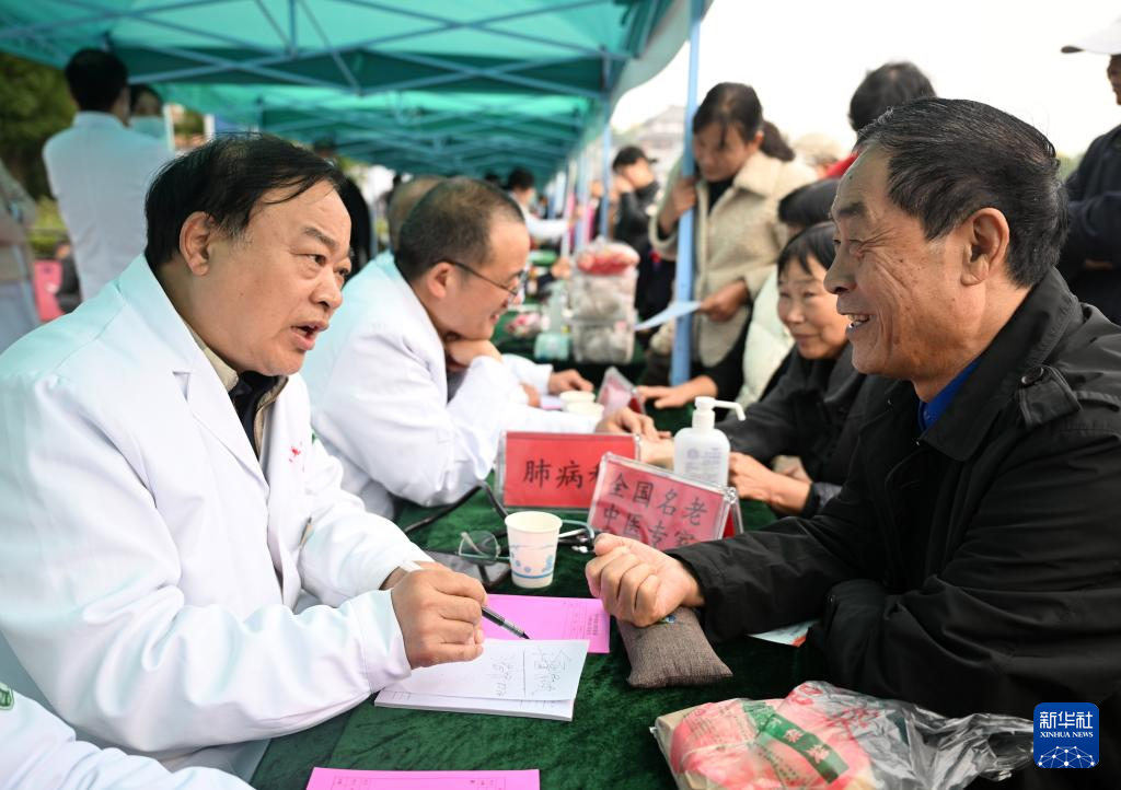 10月29日,在2025年全國“我們的節日·重陽”主題文化活動河南西平主題示范活動上,西平縣中醫院的醫生為老年人義診。