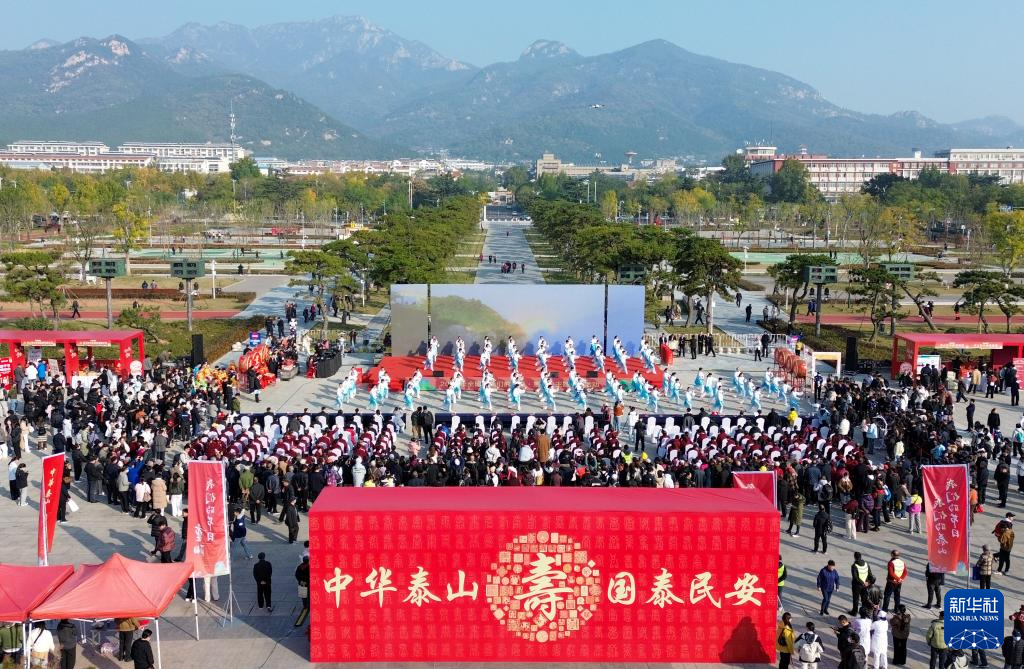 10月29日在山東省泰安市拍攝的2025年全國“我們的節日·重陽”主題文化活動泰安市示范活動現場(無人機照片)。