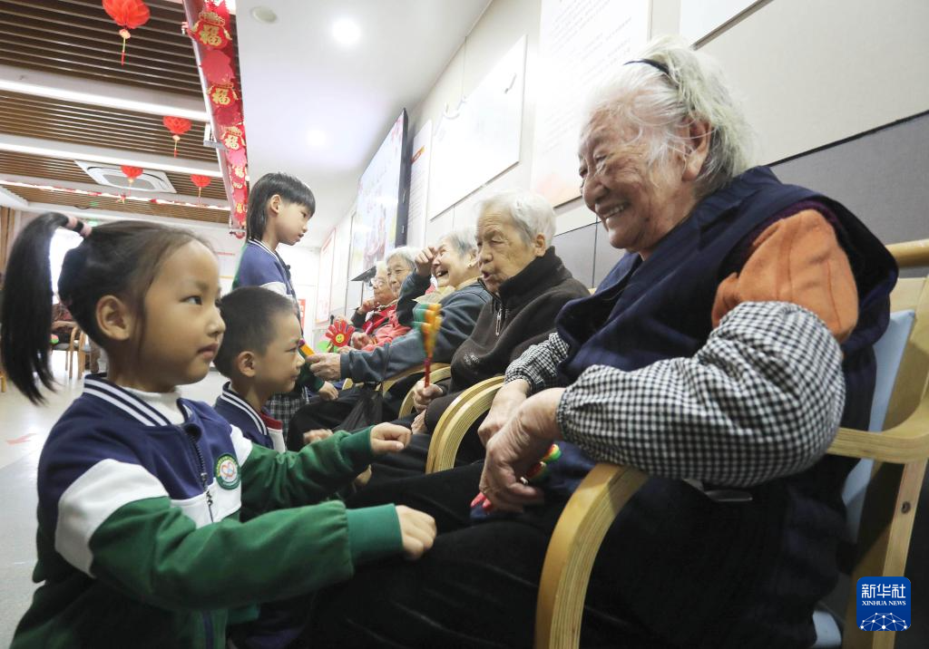 10月29日,江蘇省蘇州市姑蘇區彩香二村幼兒園的小朋友來到彩香老年公寓看望老人。