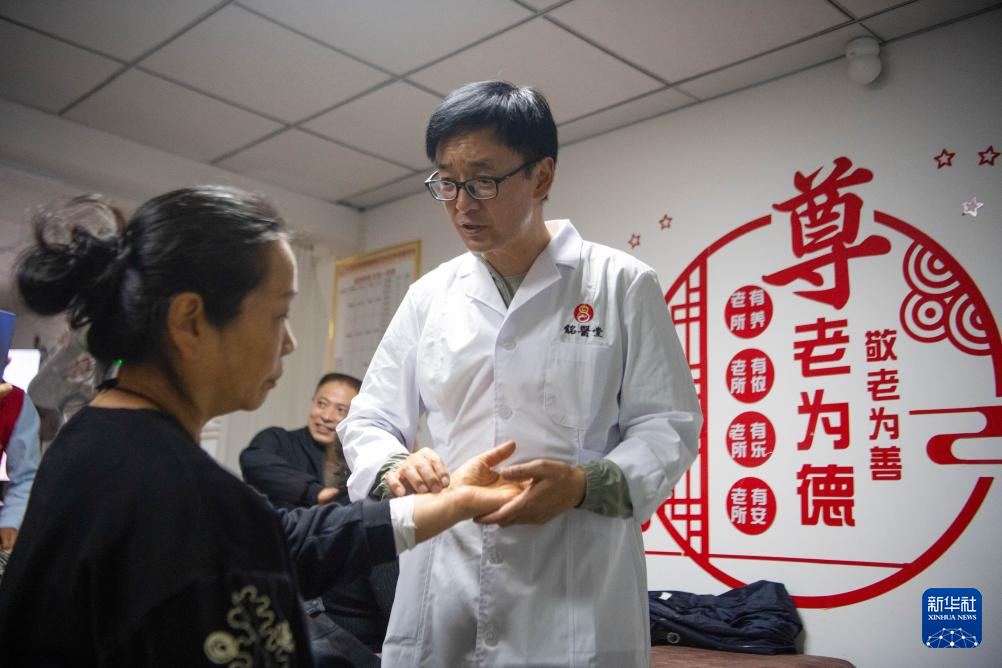 10月29日,在重慶市江北區五里店街道渝能陽光社區“享老驛站”,理療師為老年居民提供理療服務。
