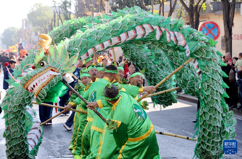10月29日,民間藝人在浙江省湖州市德清縣第十屆舞陽侯會非遺巡游活動上表演舞龍,慶祝重陽節。