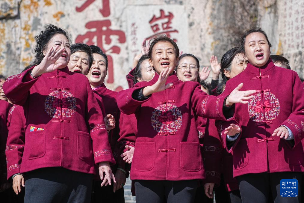 10月29日,老人在山東省泰安市舉行的2025年全國“我們的節日·重陽”主題文化活動泰安市示范活動上唱歌。