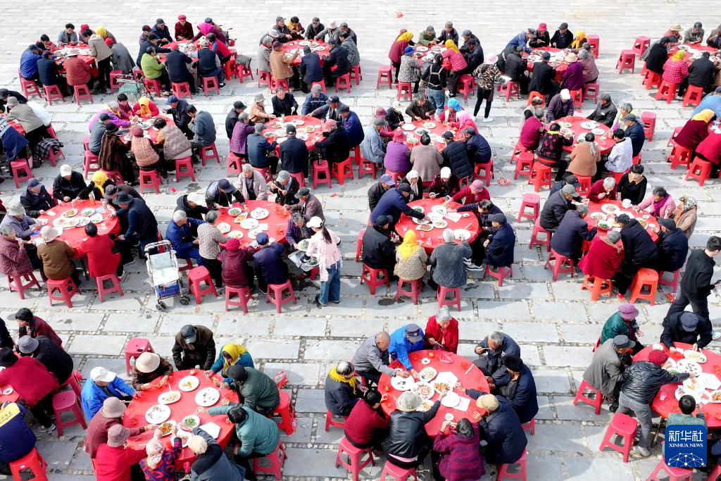 10月29日,在江蘇省徐州市銅山區柳泉鎮北村村,老人們圍坐圓桌,共享湖鮮宴席,共度重陽佳節。