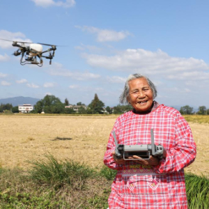 戴淑英雖然平時農活不多,但她閑不住,總想找點事情做,身體也很硬朗,植保無人機約30斤重的電池,她自己就能提起來更換。