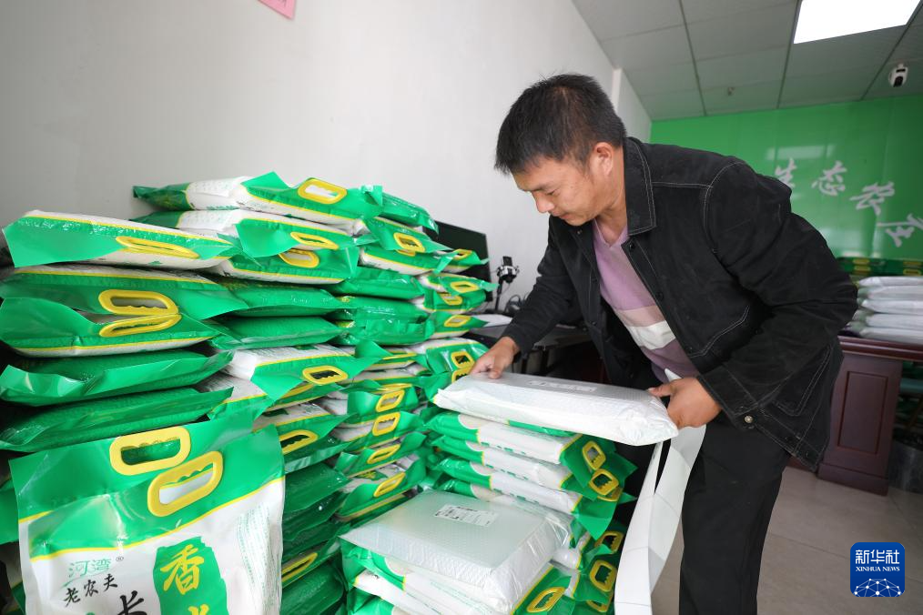 10月23日,王甜甜在桐城市的店鋪里打包自家品牌的米,準備發給直播間里下單的顧客。