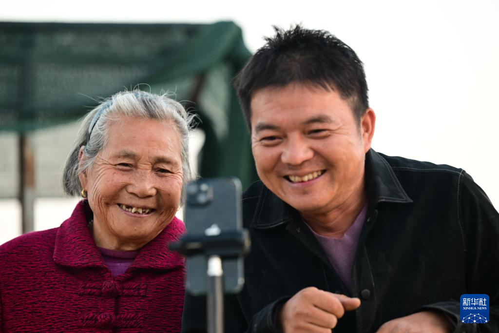 10月23日,王甜甜(左)和戴淑英一起拍攝短視頻。