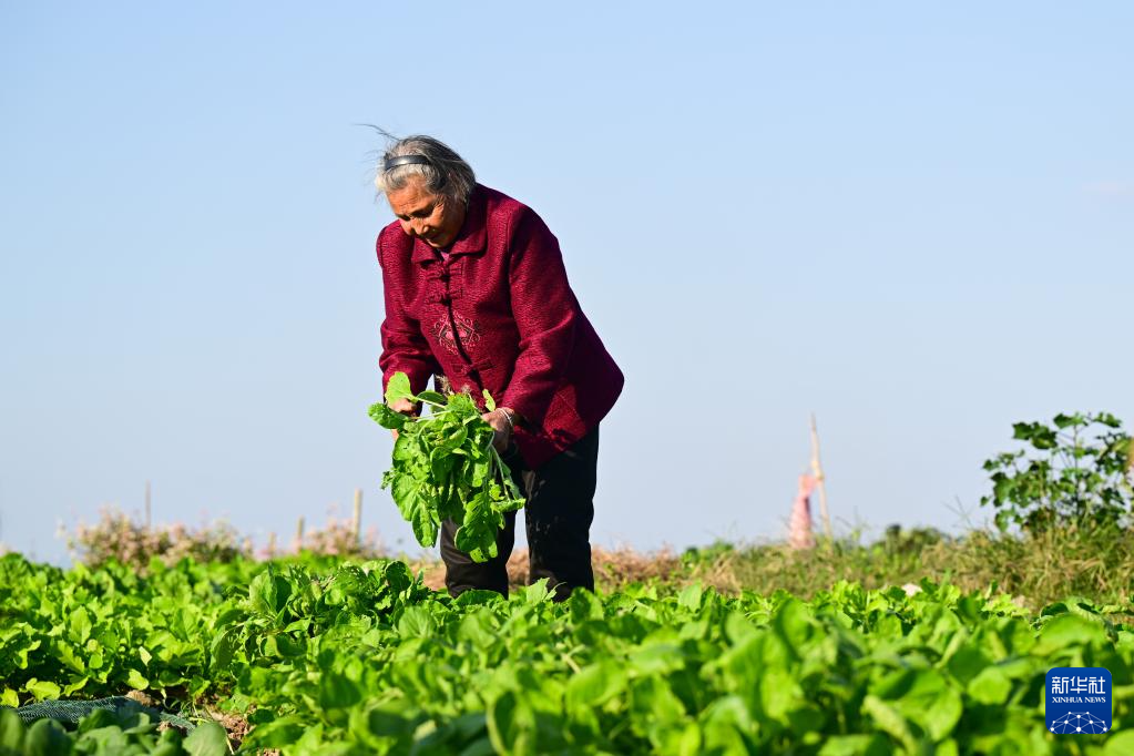 10月22日,戴淑英在菜園里摘菜。