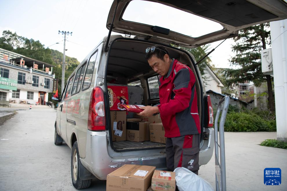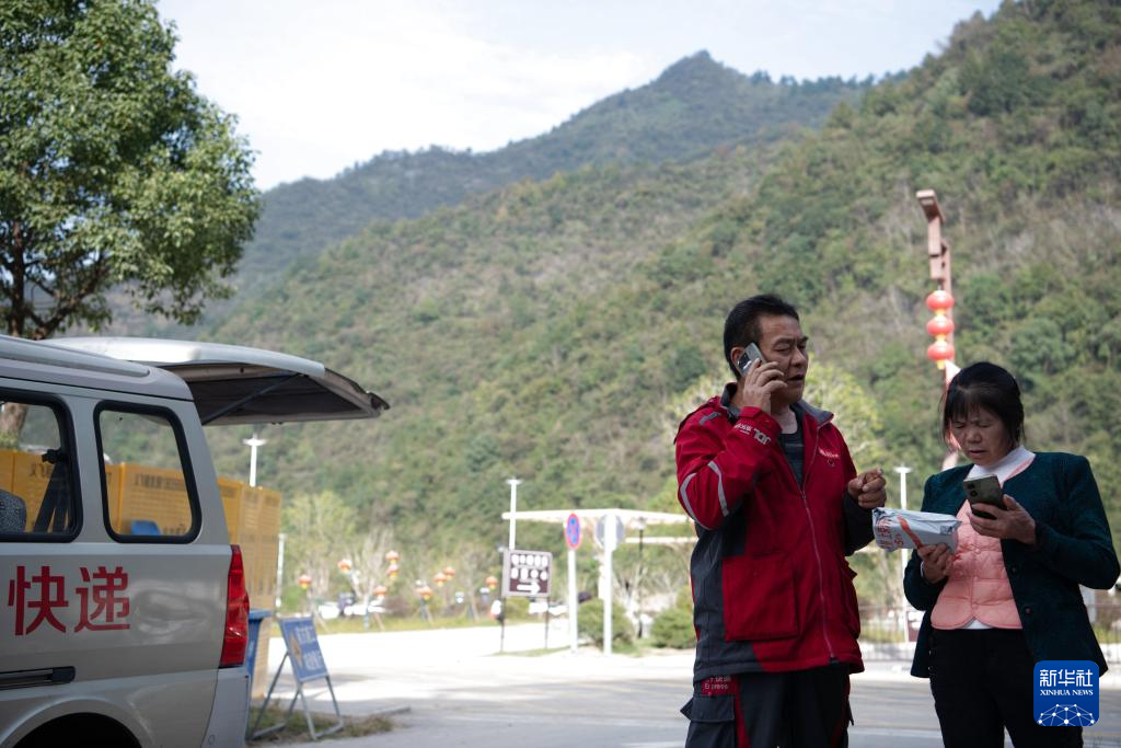 10月24日,在安徽省石臺縣大演鄉,檀世旺準備將快遞送到一處便民服務點。