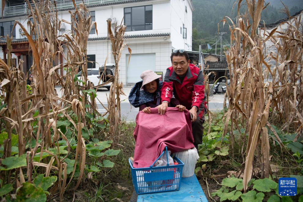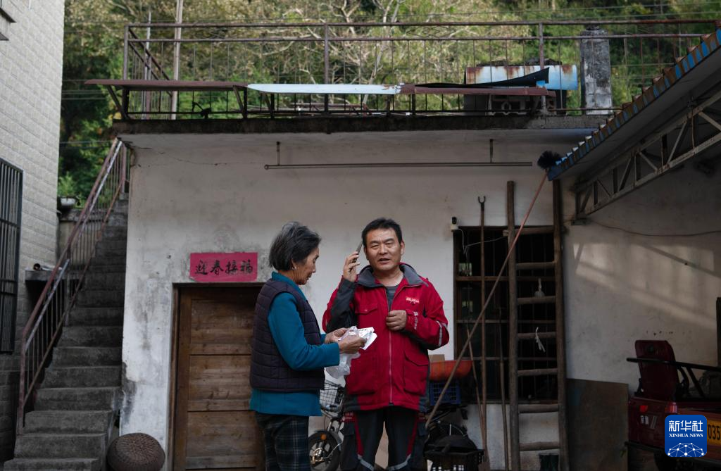10月27日,在安徽省石臺縣蓮花村,檀世旺幫助在外地務工的村民給家中老人送藥。