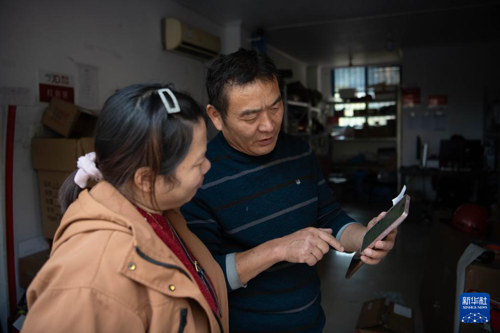 10月25日,在安徽省石臺縣,檀世旺在快遞網點教客戶用手機下單寄快遞。