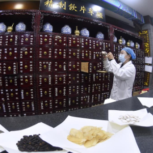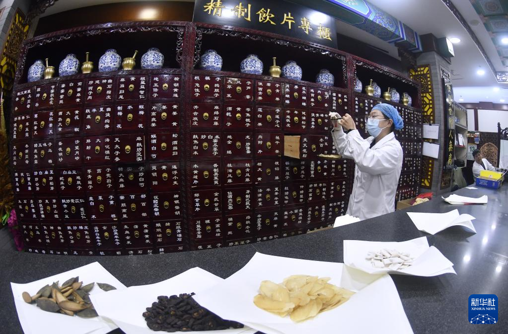 11月13日,同仁堂中醫館的藥師為患者配藥。