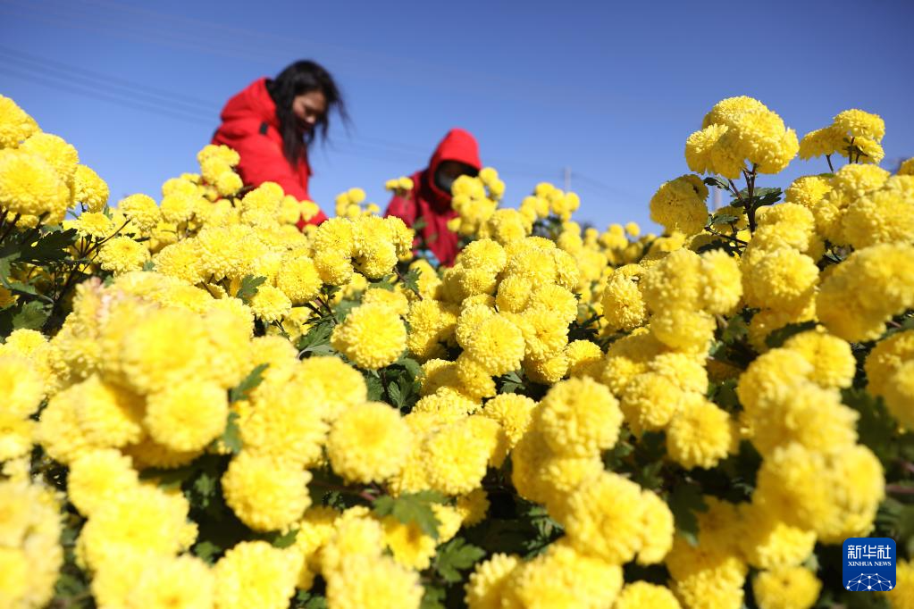 11月18日,河南省焦作市溫縣黃河街道下石井村一家懷藥種植專業合作社員工在采收懷菊花。