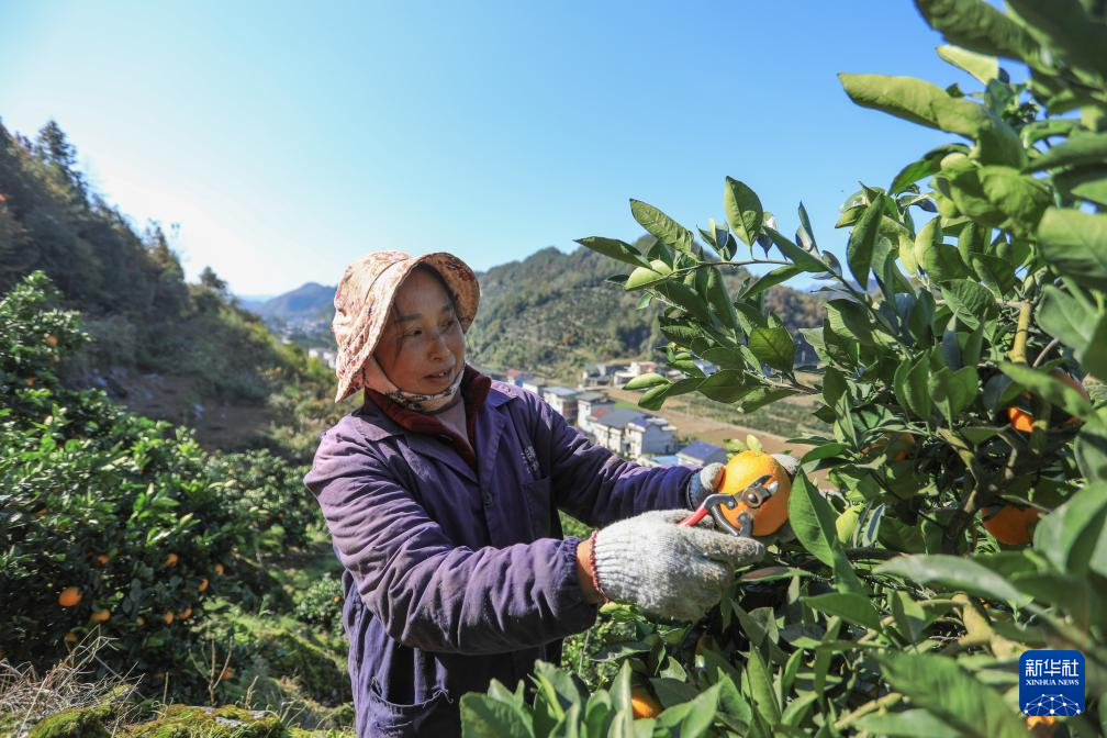11月19日,在重慶市秀山土家族苗族自治縣洪安鎮貴措社區,果農在采摘臍橙。