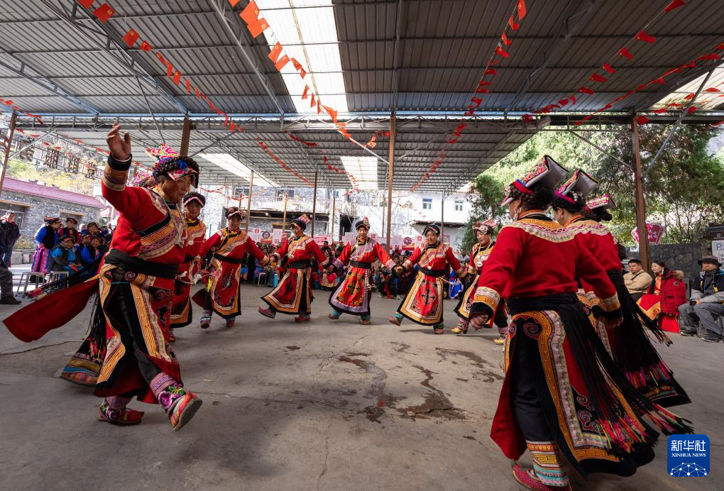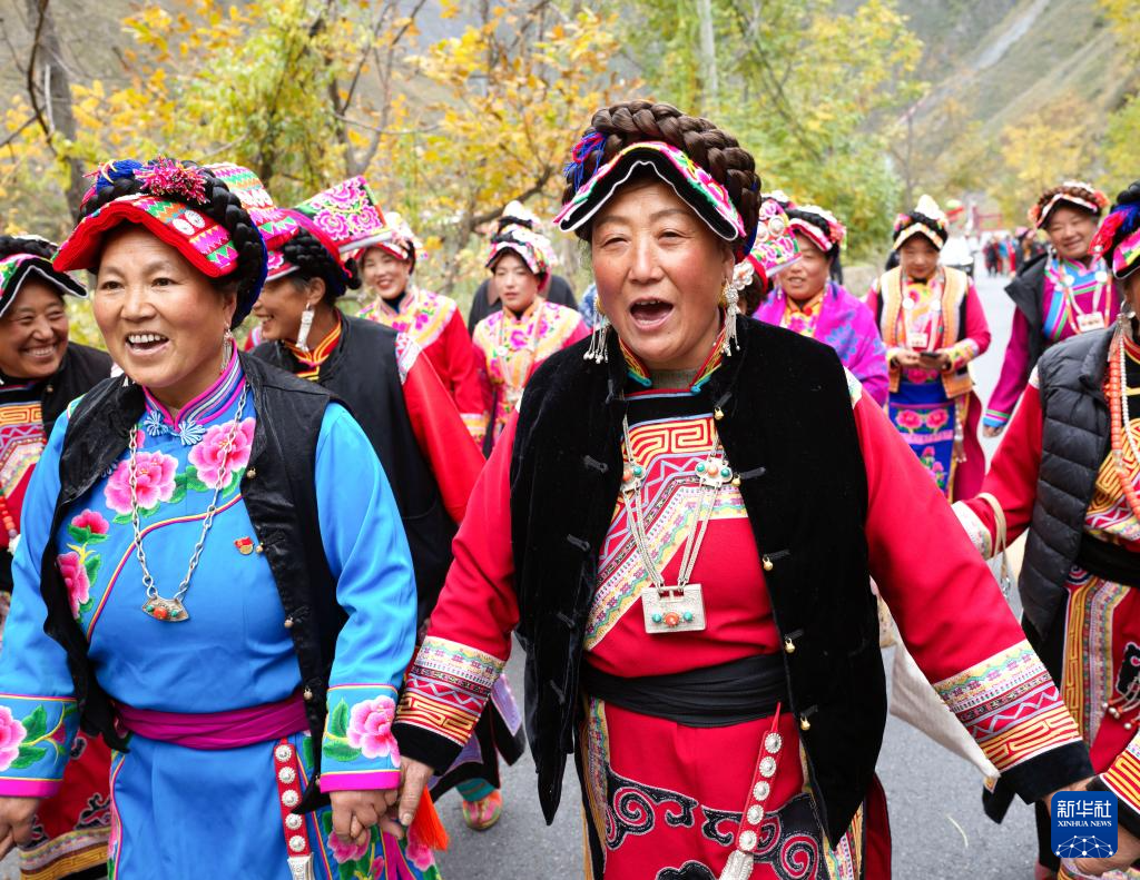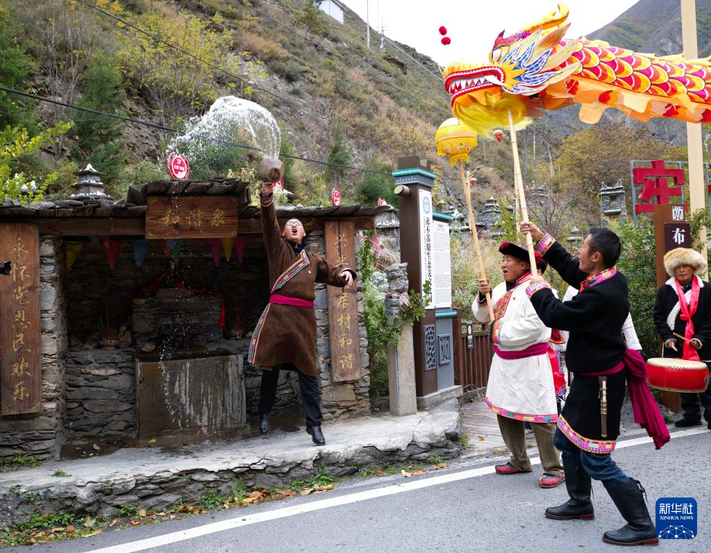 11月18日,四川省阿壩藏族羌族自治州茂縣赤不蘇鎮舉行特色民俗文化活動,當地群眾身著傳統民族服飾,與游客一起載歌載舞、品嘗咂酒、共話豐收,喜迎一年一度的羌歷新年。