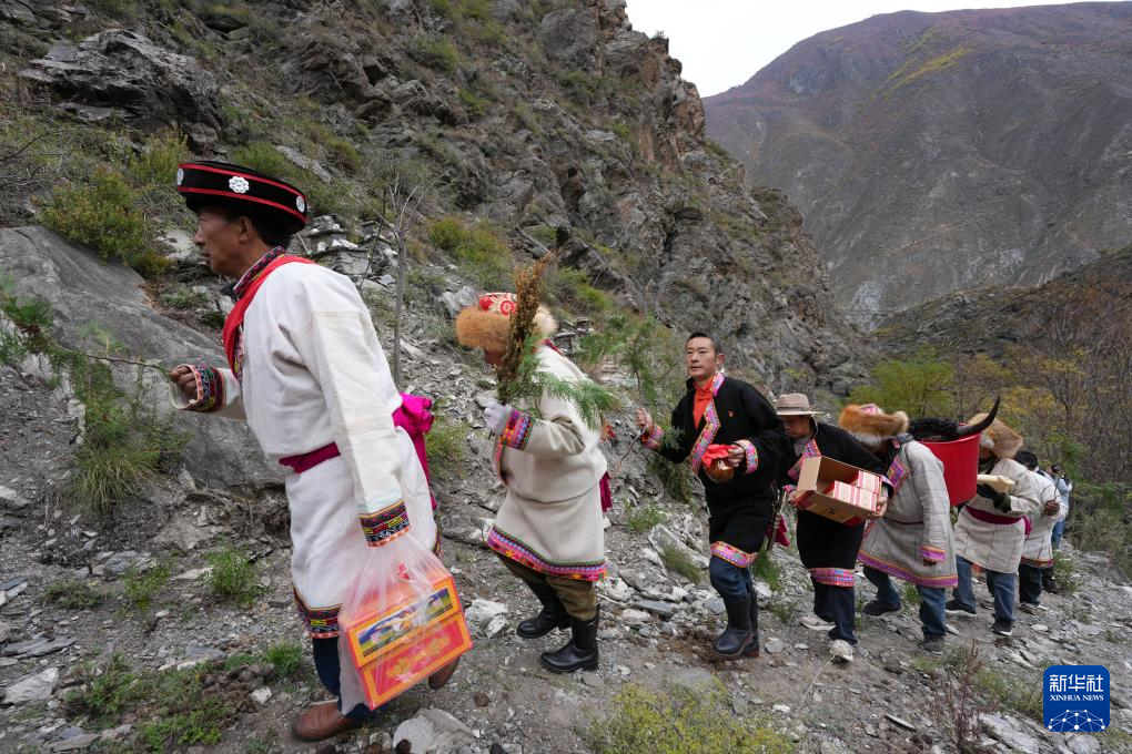 11月18日,茂縣赤不蘇鎮群眾在參加祈福儀式的路上。