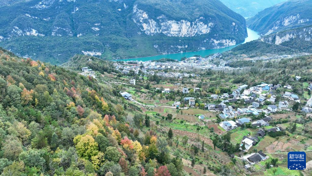 重慶市酉陽土家族苗族自治縣龔灘鎮層林盡染(11月18日攝,無人機照片)。