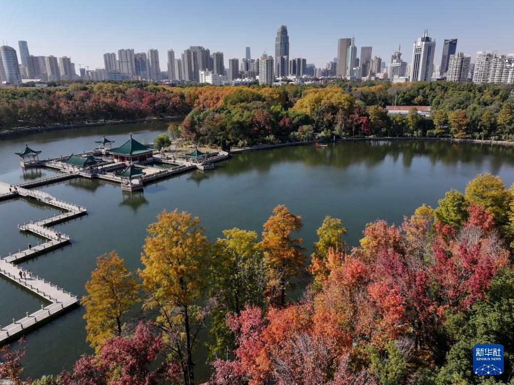 11月18日在湖北省武漢市東湖風景區拍攝的初冬景色(無人機照片)。