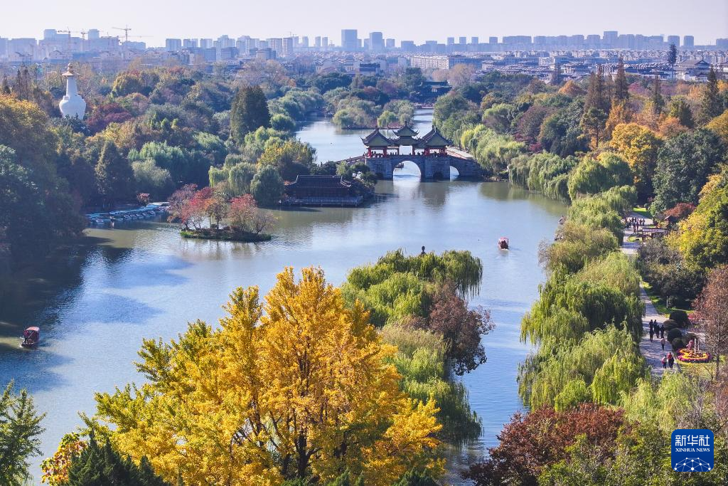 11月19日拍攝的江蘇揚州瘦西湖風景區(無人機照片)。