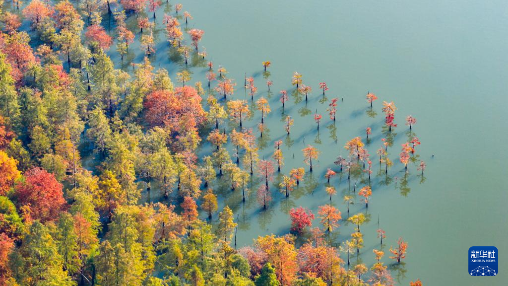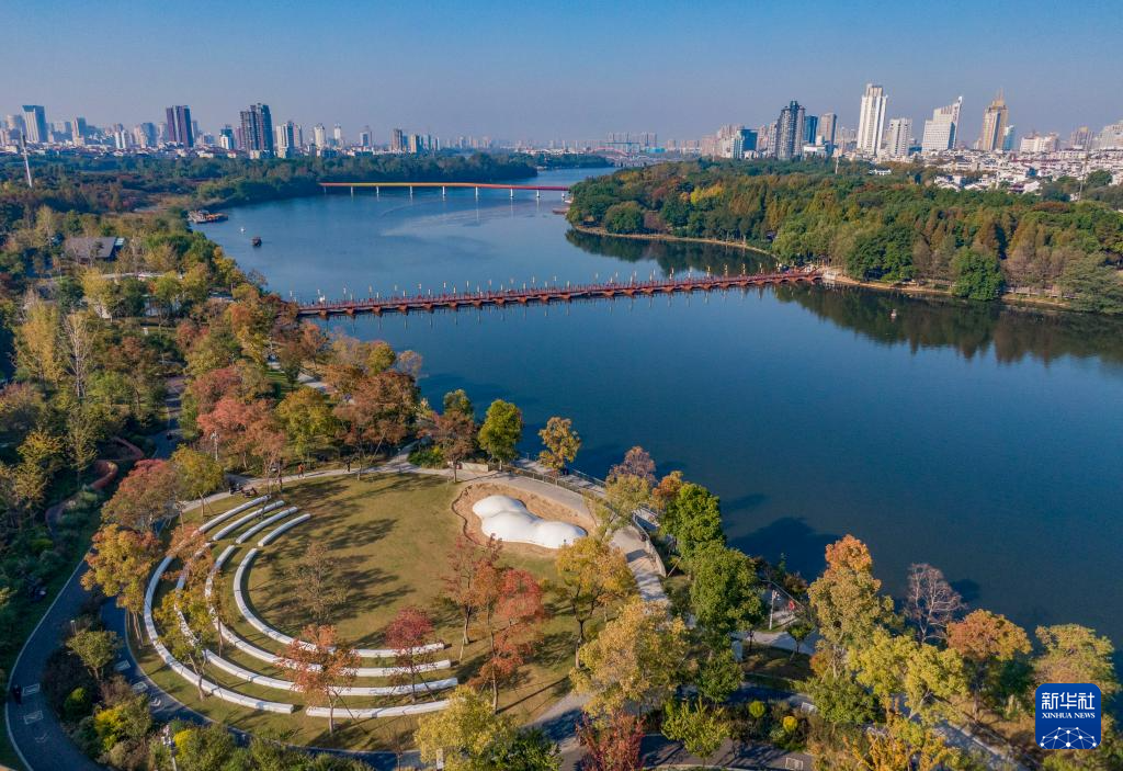 11月20日拍攝的江蘇省常熟市尚湖國家城市濕地公園景色(無人機照片)。