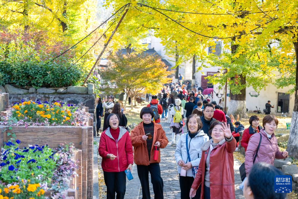11月20日,游客在浙江省湖州市長興縣小浦鎮八都岕“十里古銀杏長廊”景區游覽。