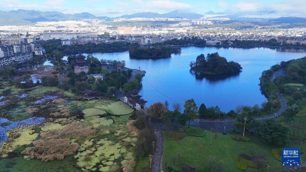 11月20日拍攝的云南騰沖歡樂湖畔景色(無人機照片)。