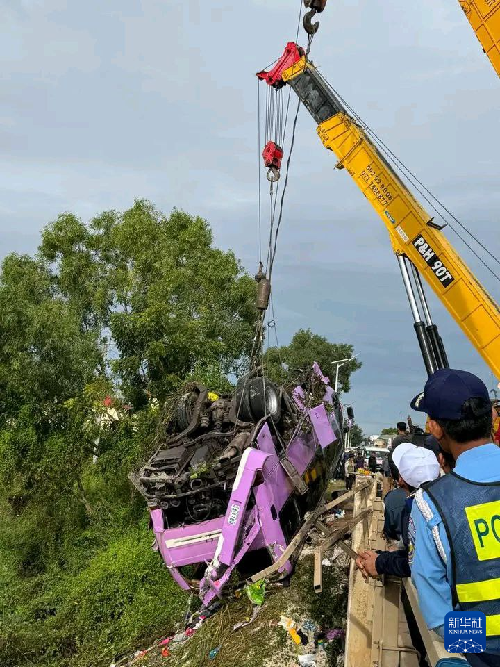 11月20日,工程車輛在柬埔寨磅同省吊起失事客車。