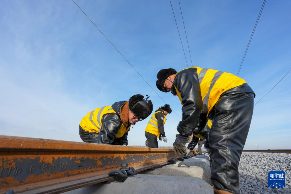 11月25日,在黑龍江省綏化市慶安縣永華村哈伊高鐵哈鐵段鋪軌現場,施工方中鐵二局的四名工人手持電動扳手,將最后一對鋼軌螺栓擰緊,標志著我國“十四五”重點工程哈伊高鐵全線鋪軌貫通,為后續聯調聯試奠定基礎。