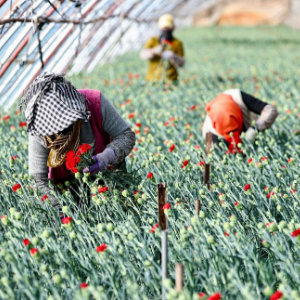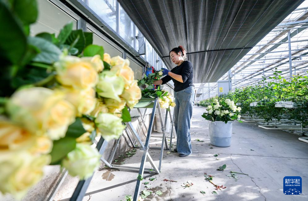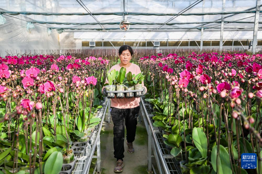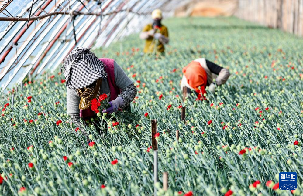 近日,寧夏銀川市興慶區各花卉基地的玫瑰、康乃馨、蝴蝶蘭競相綻放,工人忙著養護、采摘和包裝花卉,供應市場。近年來,銀川市興慶區依托光照資源優勢,發展特色花卉產業,通過建成農業高科技智慧示范園,提升花卉冬季生產能力。目前,興慶區花卉種植面積7000余畝,帶動4000余名農戶就業,形成鮮切花、盆栽、綠化觀賞苗木三大品種產業鏈,花卉產業年產值約1.6億元。