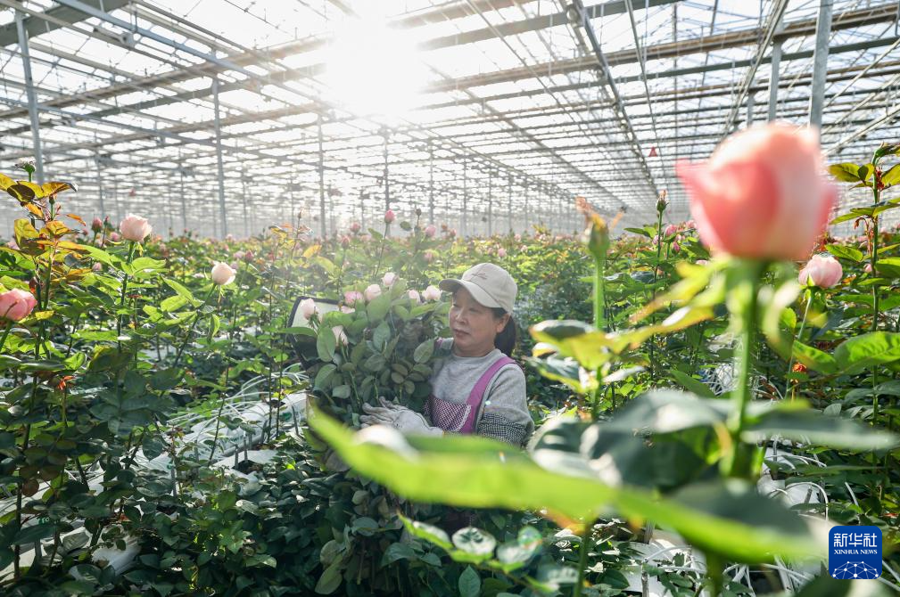 11月25日,在位于寧夏銀川市興慶區大新鎮的農業高科技智慧示范園內,工人在采摘玫瑰。