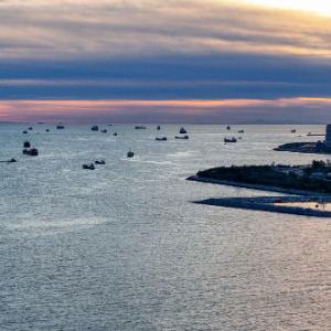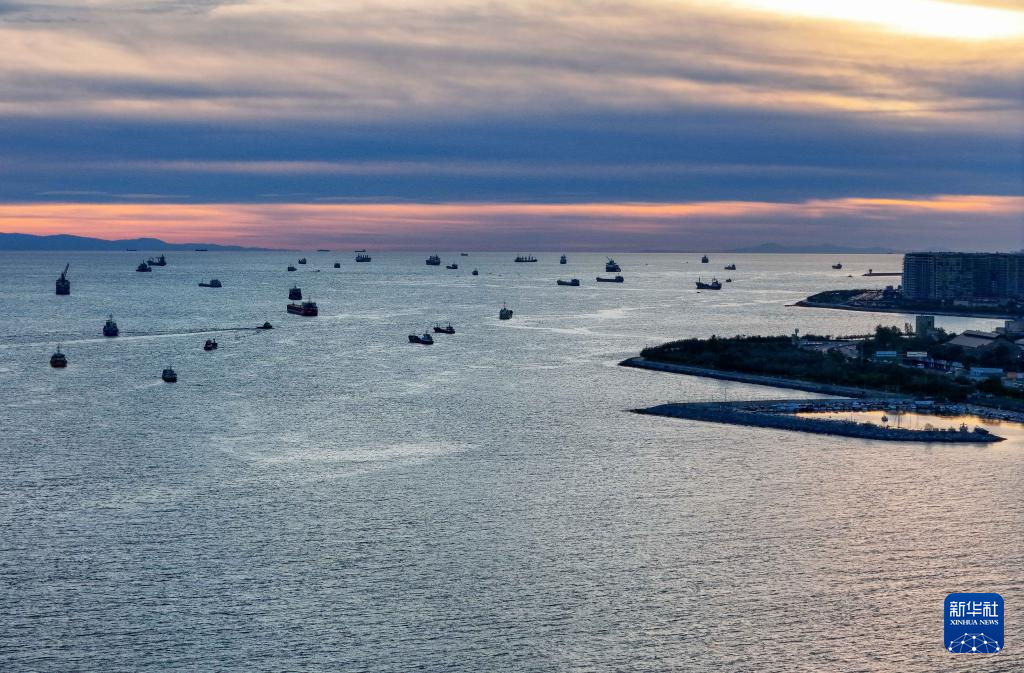 這是11月24日拍攝的停泊在土耳其伊斯坦布爾馬爾馬拉海上的船只(無人機照片)。
