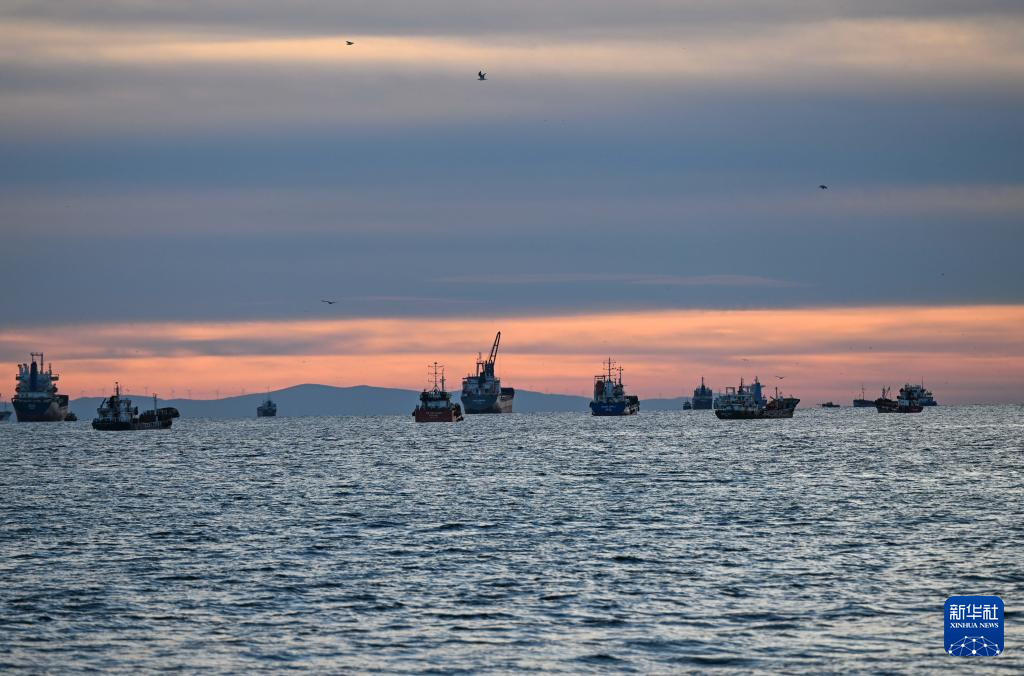 這是11月25日拍攝的停泊在土耳其伊斯坦布爾馬爾馬拉海上的船只。