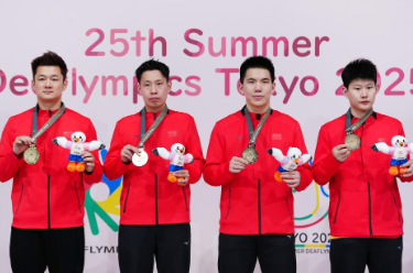 11月24日,在日本東京舉行的第25屆夏季聽障奧運會乒乓球項目男子團體決賽中,中國隊3比0戰勝中國臺北隊,奪得冠軍。