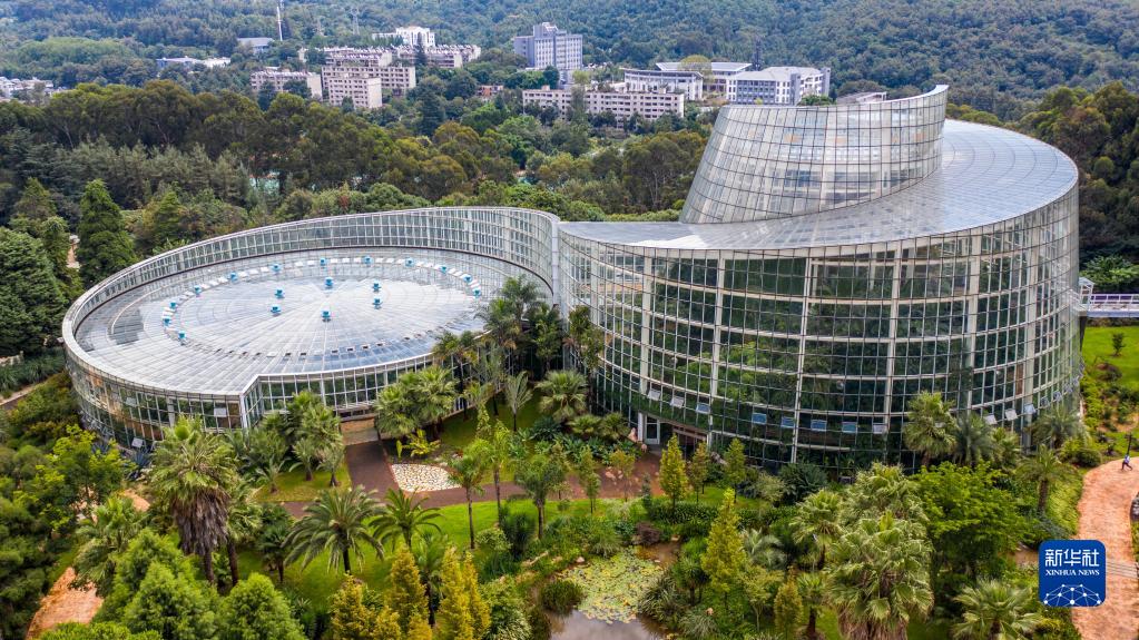 這是中國科學院昆明植物研究所昆明植物園內的“扶荔宮”生物多樣性體驗園一景(無人機照片,9月2日攝)。新華社記者 胡超 攝
