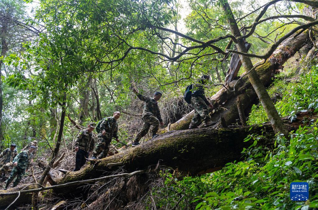 高黎貢山國家級自然保護區瀘水專職巡護隊在山間巡護(3月12日攝)。新華社記者 陳欣波 攝