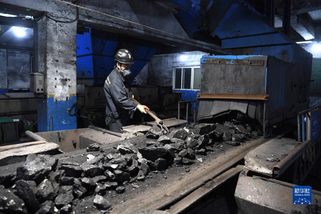 10月20日,安徽省宿州市錢營孜煤礦工人在篩分電煤。新華社記者 韓旭 攝