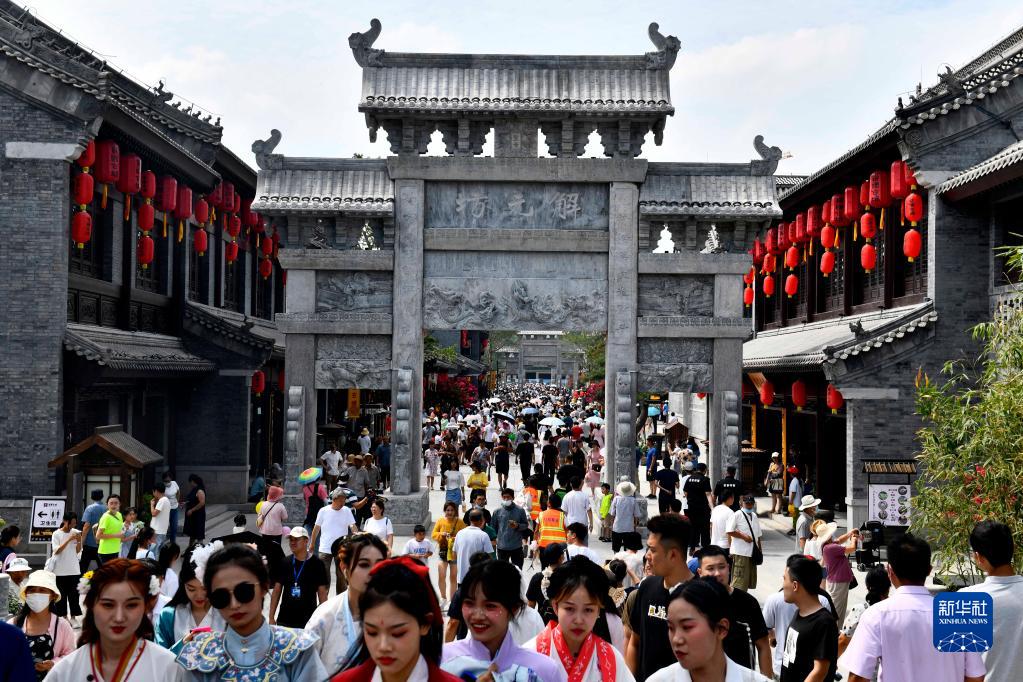 游客在山東省莒縣莒國古城商業街區游覽(7月24日攝)。新華社記者 郭緒雷 攝