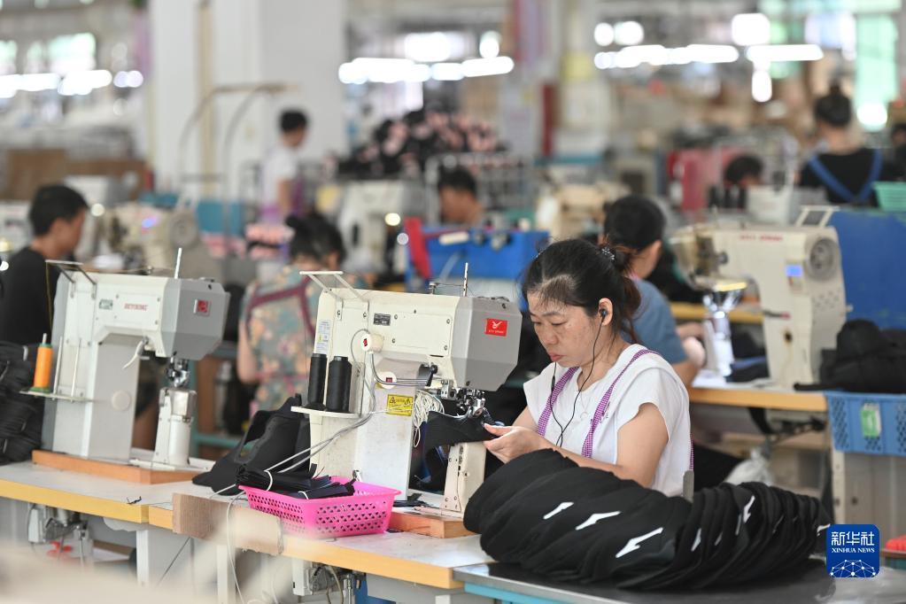 在位于福建省泉州市的鴻星爾克集團鴻榮輕工公司車間,工人在制鞋生產線上操作縫紉機(7月30日攝)。當地稅務部門近年來積極落實減稅降費,出臺一系列穩定工業、扶持外貿、鼓勵企業研發創新的政策,服務實體經濟發展。新華社記者 宋為偉 攝
