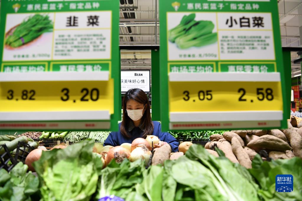 市民在安徽省合肥市經開區芙蓉社區一家超市選購“惠民菜”(11月7日攝)。新華社記者 劉軍喜 攝