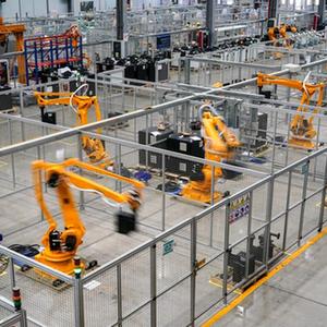 在位于江蘇省南京市江寧區的南京埃斯頓自動化股份有限公司工業機器人生產車間,工業機器人在進行跑合測試(7月1日攝)。新華社記者 李博 攝