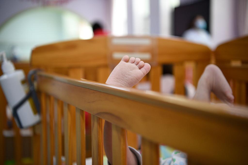 寧夏兒童福利院內,午睡時間,一名孩子把腳搭在欄桿上。新華社記者 王鵬 攝