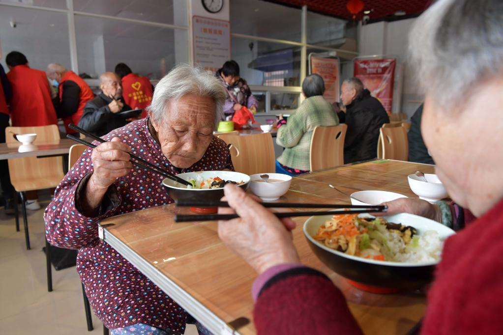 2021年11月24日,在南昌市西湖區桃花鎮河畔社區愛心餐廳,社區居民在就餐。 新華社記者 彭昭之 攝