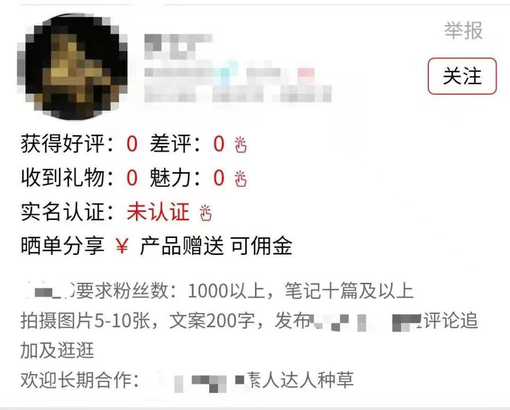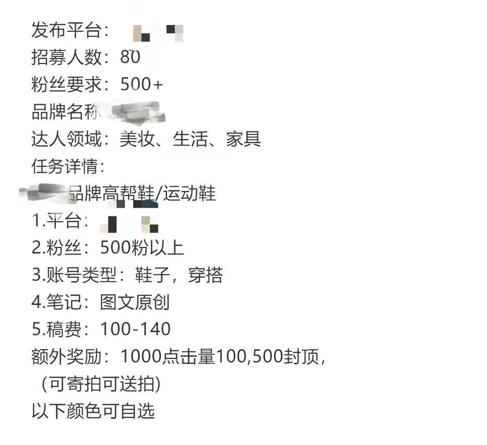 某品牌方有償招募“網紅”撰寫虛假“種草筆記”