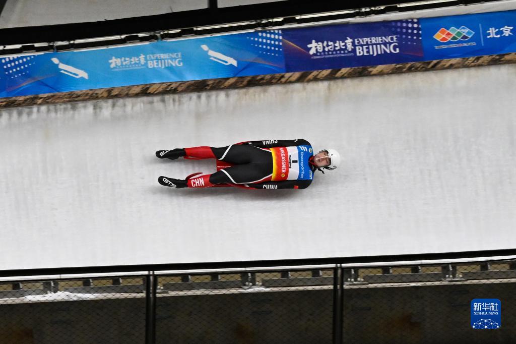 2021年11月20日,中國選手范鐸耀在“相約北京”2021/2022國際雪橇聯合會雪橇世界杯男子單人雪橇比賽中。新華社記者 陳益宸 攝
